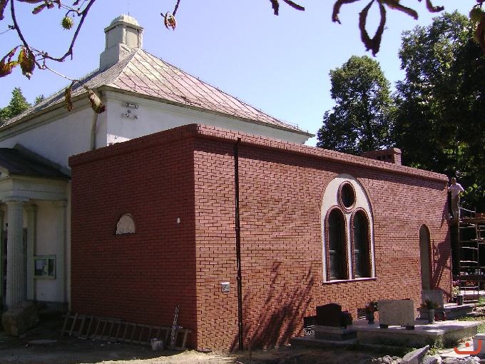 Elewacja kaplicy bocznej Elewacja kaplicy bocznej Elewacja kaplicy bocznej Kaplica boczna-ściana zachodnia Wykop pod fundament kolumbarium Prace przy elewacji Prace przy elewacji Widok od strony cmentarza Elewacja kaplicy bocznej