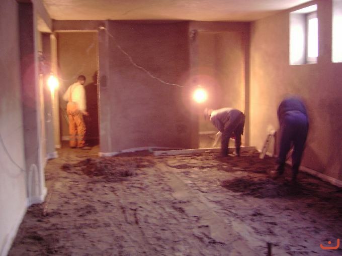 Ogrzewanie podłogowe w kaplicy w przyziemiu Główny węzeł ogrzewania w przyziemiu Sieć przewodów ogrzewania podłogowego Przygotowania do położenia przewodów Zalewanie przewodów grzewczych Zalewanie przewodów grzewczych Finezyjne kształty przewodów grzewczych Prace przy ogrzewaniu podłogowym Przewody grzewcze w przyziemiu