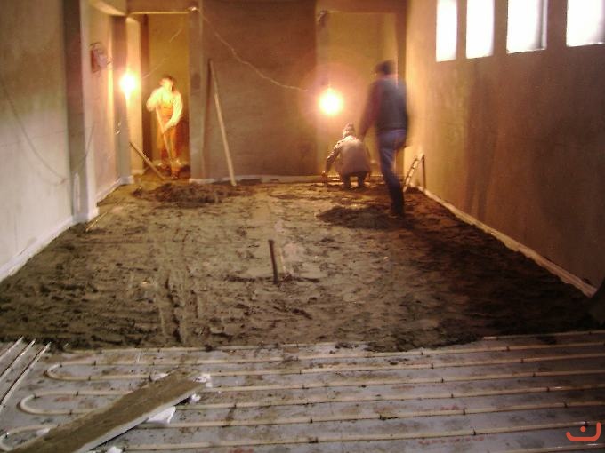 Ogrzewanie podłogowe w kaplicy w przyziemiu Główny węzeł ogrzewania w przyziemiu Sieć przewodów ogrzewania podłogowego Przygotowania do położenia przewodów Zalewanie przewodów grzewczych Zalewanie przewodów grzewczych Finezyjne kształty przewodów grzewczych Prace przy ogrzewaniu podłogowym Przewody grzewcze w przyziemiu