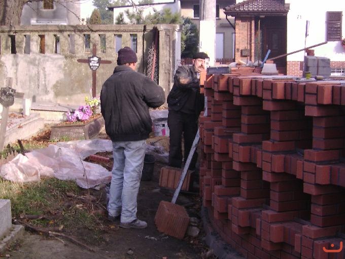 Elewacja zewnętrzna prezbiterium Elewacja zewnętrzna prezbiterium Fundament pod kolumbarium Tynkowanie kaplicy bocznej Tynkowanie kaplicy bocznej Kolumbarium Kolumbarium Kolumbarium
